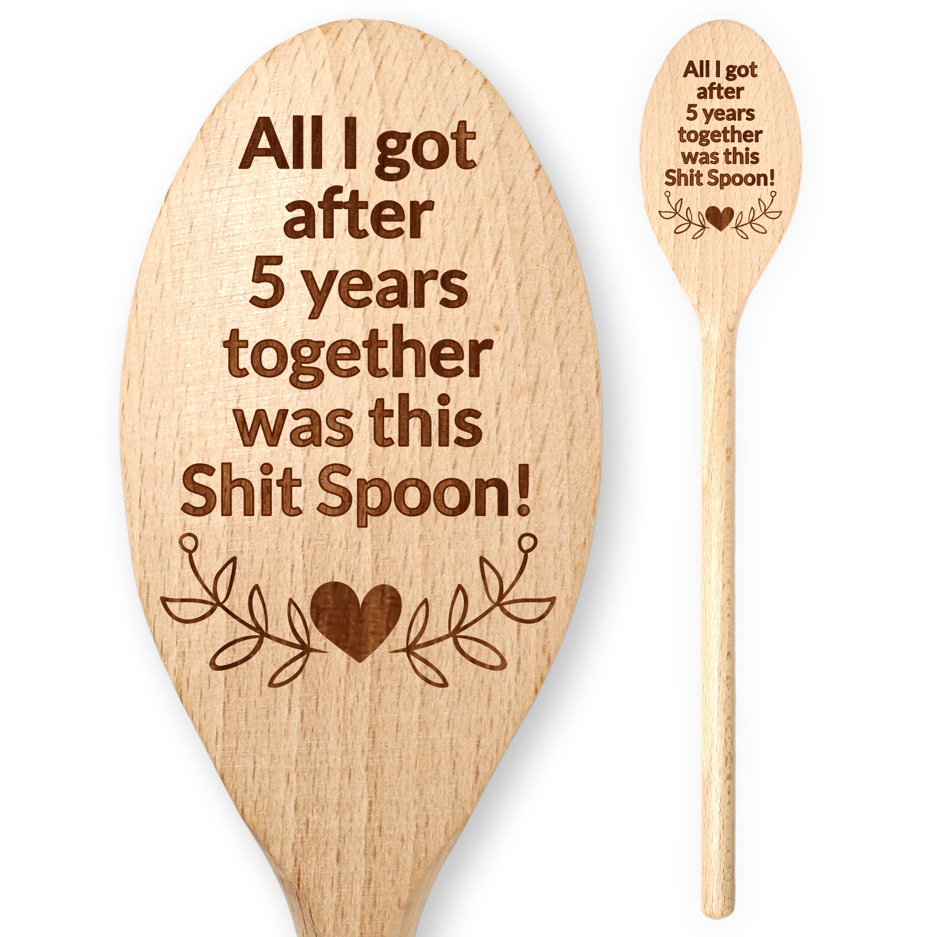 A standout gift that’s both functional and funny, ensuring it is remembered long after the occasion. After five years together, what better way to commemorate the journey than with a touch of humour. This high-quality beech spoon is professionally laser engraved in the UK. Whether it’s used for cooking or displayed as a keepsake it is sure to bring a smile.