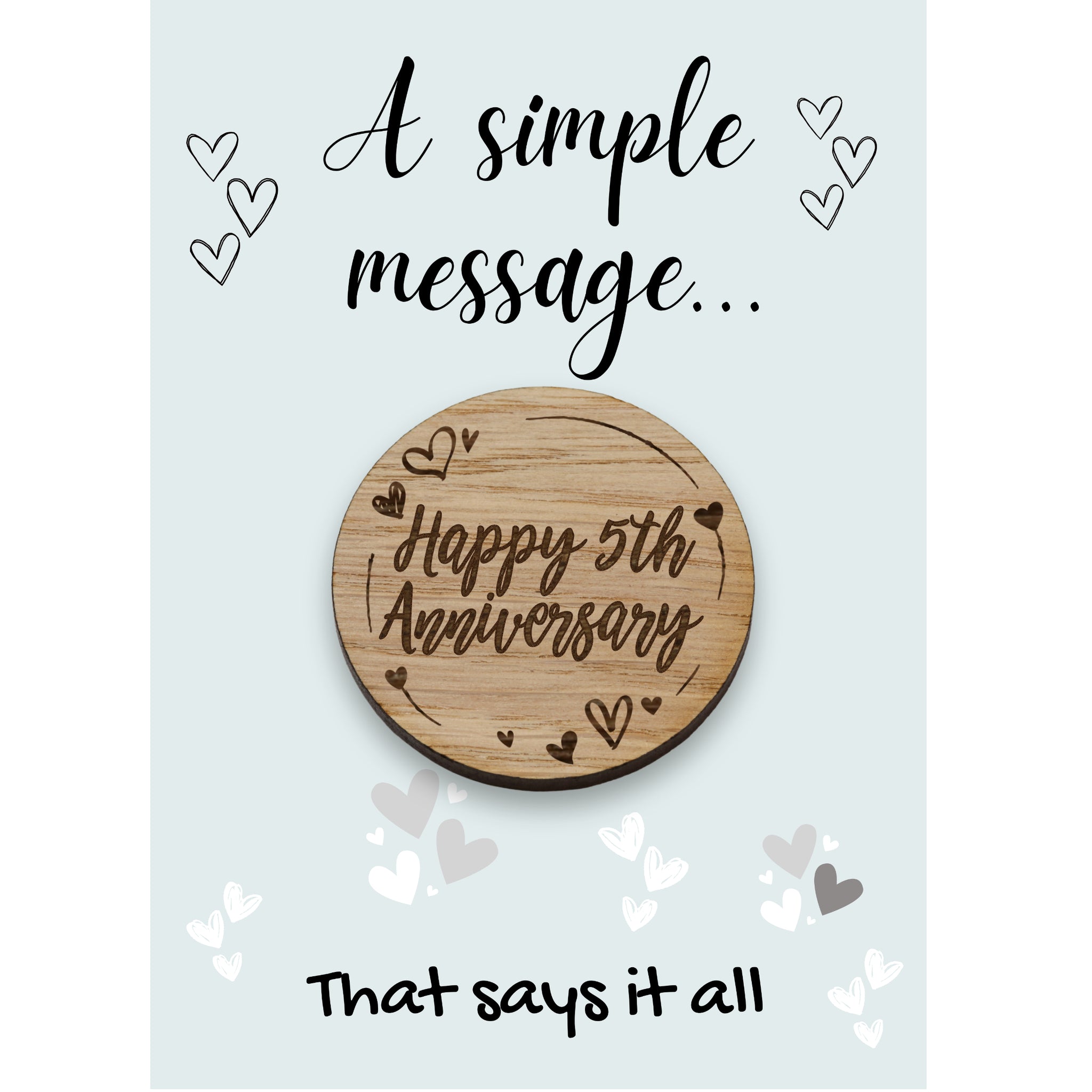 Celebrate five years of love and commitment with this beautiful engraved wooden token and card set. Thoughtfully designed, this token is a daily reminder of happy memories. The compact size means it is easy to carry, in a bag or a pocket. The wooden token is mounted on a beautifully printed card, the back has blank lines giving you space to write your own message, making this an even more meaningful gift. Perfect for slipping in a pocket, bag or wallet. Whether it’s a friend, colleague, daughter or son this little gift can brighten someone’s day.